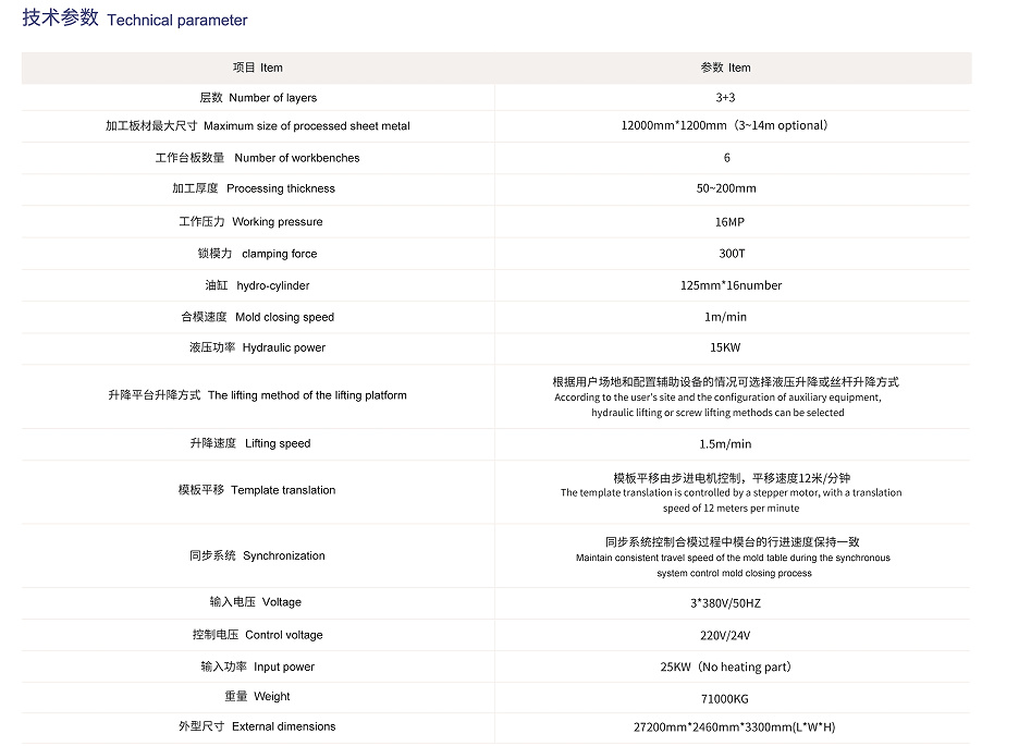 二是自動升降平臺,她的作用是從打開的層壓機工作區(qū)中將完成工作的模板取出,然后下降到適合工作的高度,再有人工或機械手將保溫板取出,然后進(jìn)行鋪裝工作,再將準(zhǔn)備好的模板送入層壓機,然后在取出下一塊模板,直至將三塊模板都完成工作。